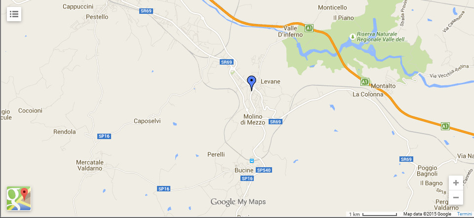 From Florence -> A1 Motorway exit Terranuova B.ni -> Levane -> to the town centre, at the traffic lights turn right > we are 100 metres on the right.